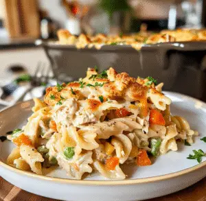 Chicken Pot Pie Pasta is a comforting, creamy dish that brings together tender chicken and vibrant vegetables with pasta, offering an easy family favorite perfect for weeknight dinners.